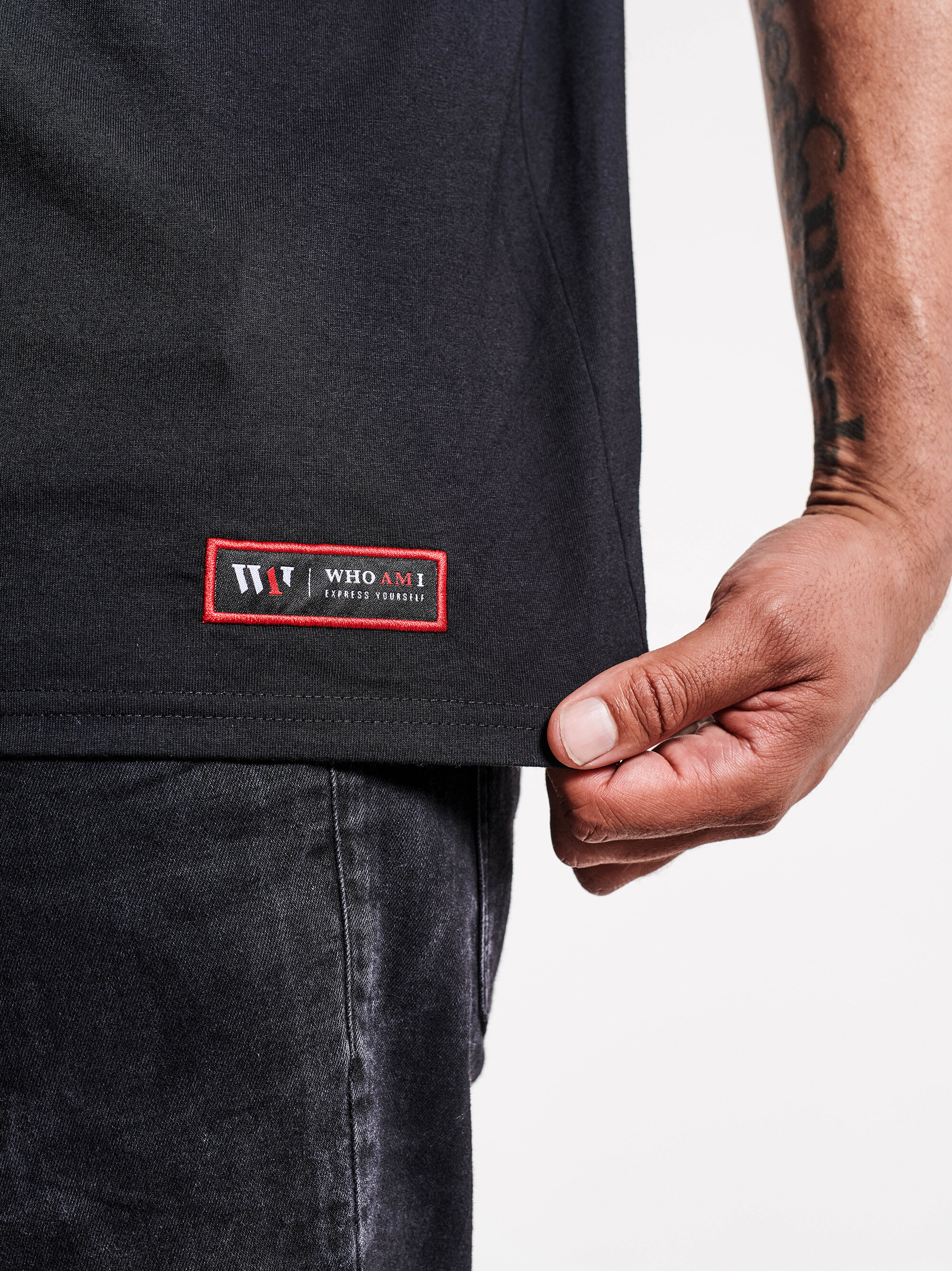Auch das Nackenlabel ist mit dem WHO AM I Logo veredelt.