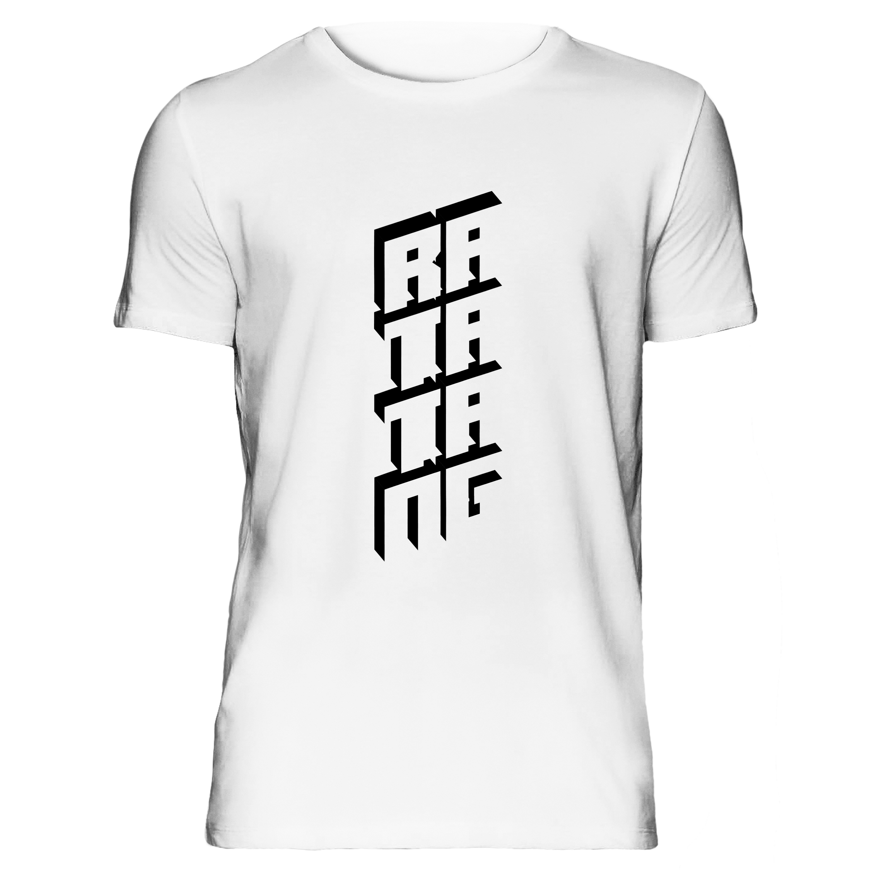 Dieses weiße rundhals T-Shirt trägt die Aufschrift "RATATANG" auf der Front.
